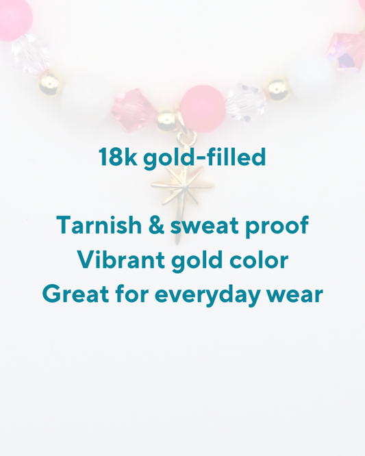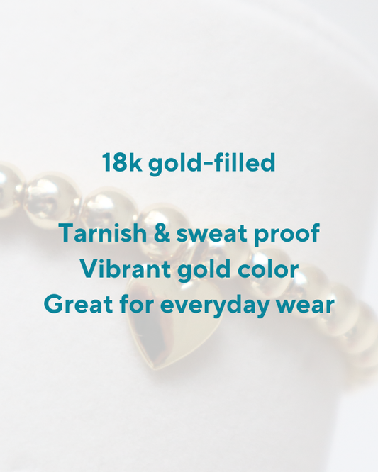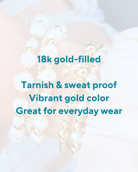 Handstrung in Minnesota using 18k gold filled beads that are sweat resistant & long lasting.